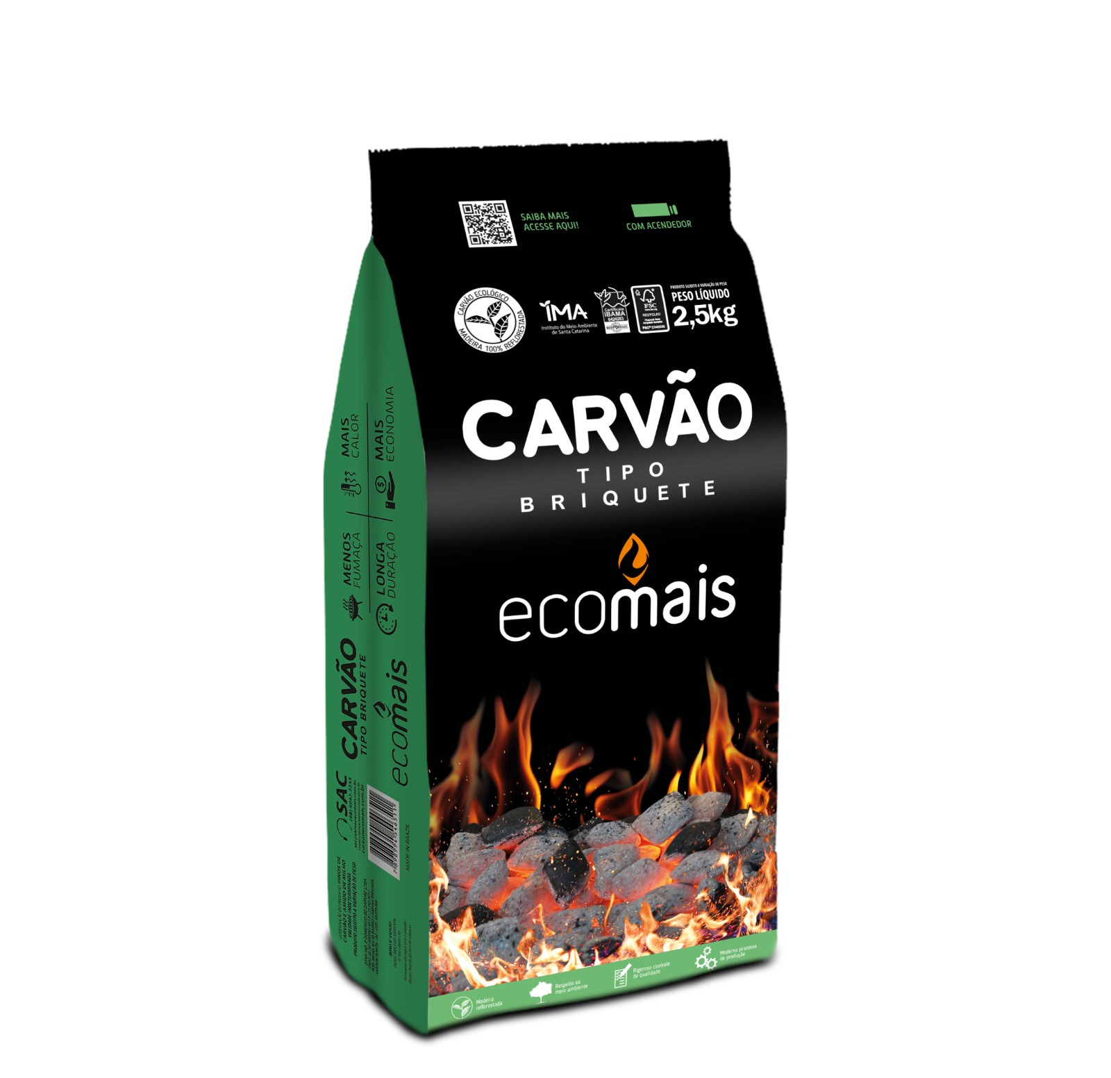 Carvao Briquete Ecomais 2,5kg Ecologico