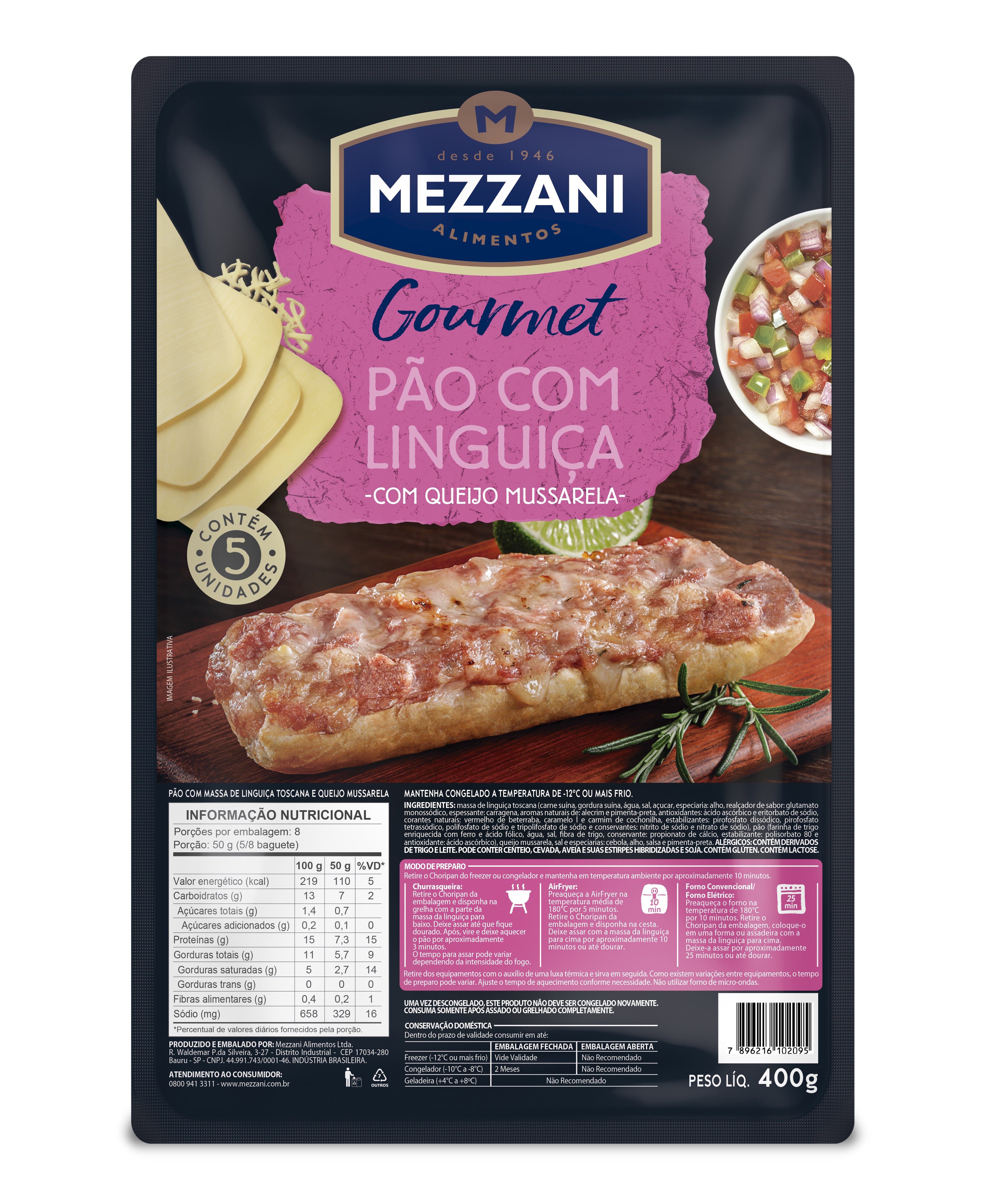 Pao Linguica Gourmet Mezzani 400g Qjo.mussarela